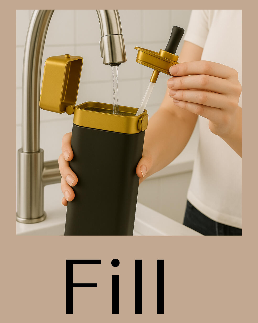 Snap open the wide-mouth cap and fill the HYDN Pod with water (or your drink of choice). Add ice if you like — it’s that easy.